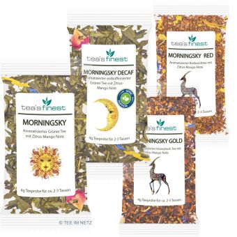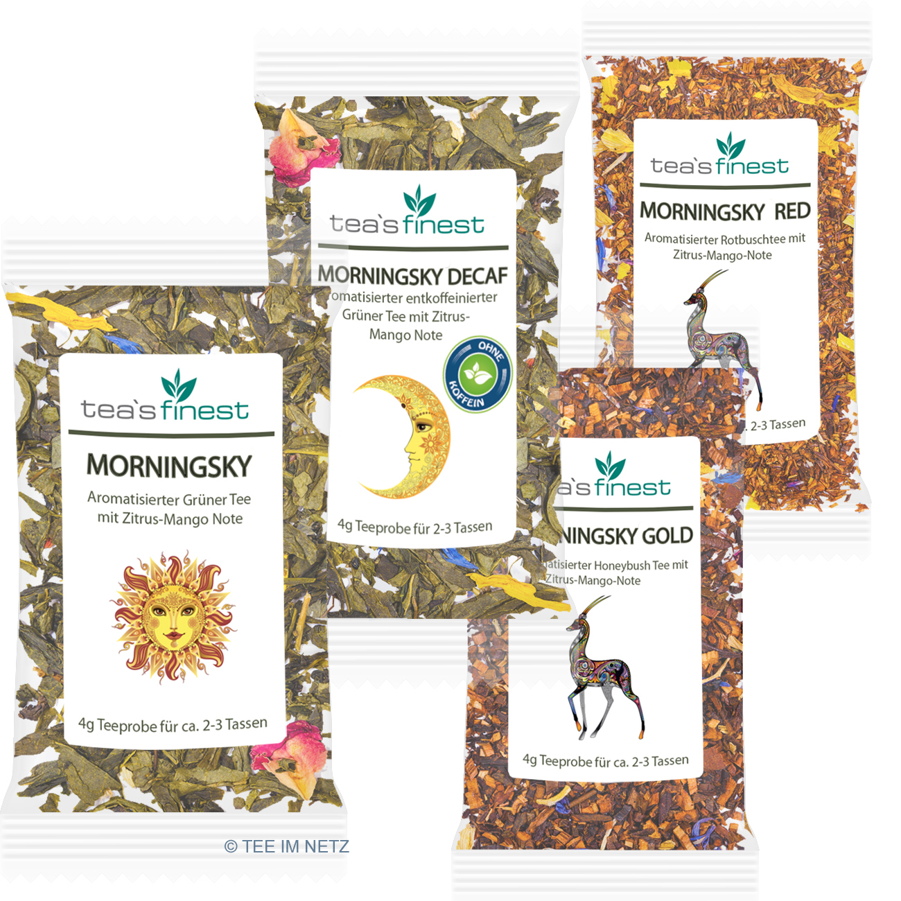 Wunderbare Morningsky -Kompositionen mit fruchtiger Zitrus-Mango-Note in verschiedenen Varationen, exclusiv und nur bei TEE IM NETZ.