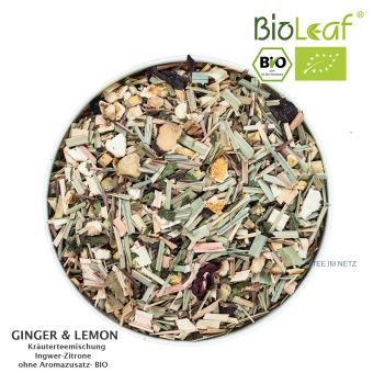 Diese Bio-Kräutermischung Ginger & Lemon (Ingwer & Zitrone) vereint frisches Zitronengras mit aromatischem Ingwer und einer feinen Süße von Süßholz. Pfefferminze, Orangenschalen und spritziger Hibiskus verleihen dem Tee eine ausgewogene, fruchtig-würzige Note. Ein Kräutertee ohne Aromazusatz - ob heiß oder kalt genossen.