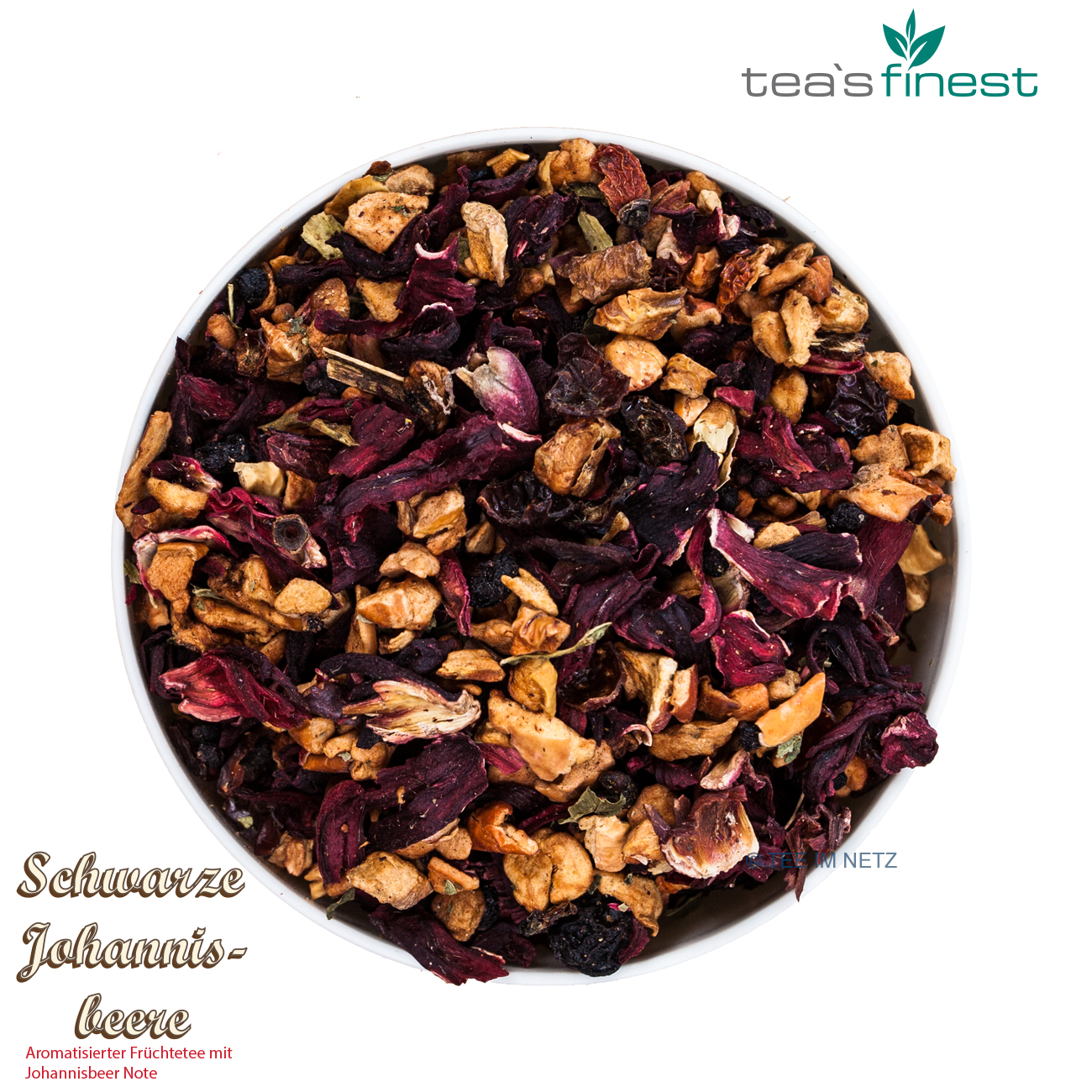 Verführerisch fruchtige Komposition aus Schwarzen Johannisbeeren mit milden Apfelstücken, spritzer Hibiskus und Holunderbeeren.