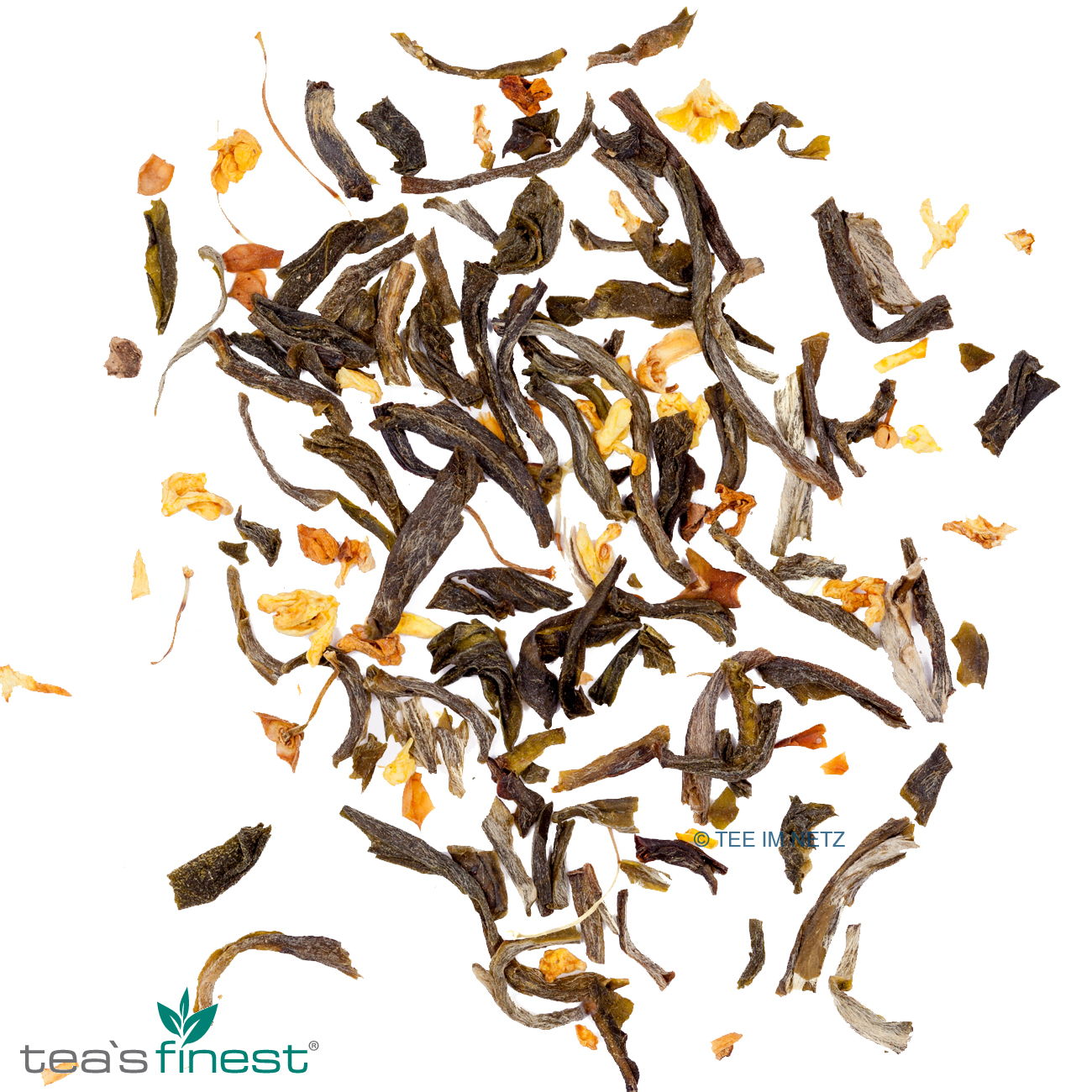 Ein aussergewöhnlicher Tee aus der Provinz Guangxi im Süden Chinas. Der leicht anfermentierte Grüntee wird mit frischen Osmanthusblüten vermischt, die diesem Tee den angenehmen Pfirsichgeschmack verleihen. Oolong Gui Hua Sweet Osmanthus zeichnet sich durch die goldfarbene Tasse und den lieblich fruchtigen Geschmack aus.