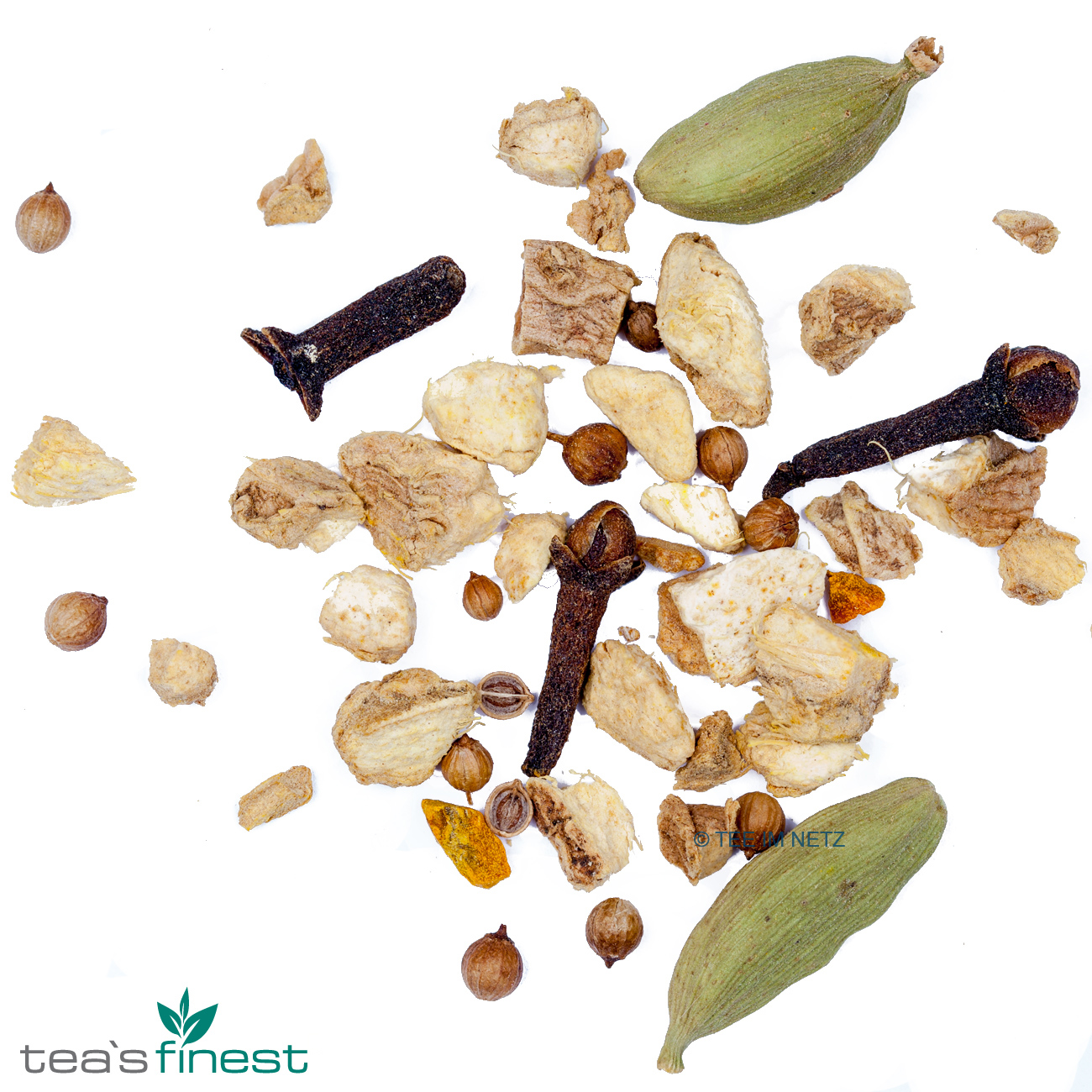 Diese ayurvedische Kräuterteemischung besteht aus nur 6 Zutaten und zeichnet sich durch die intensive Würze und das kraftvolle Aroma aus. Für unverwechselbaren Geschmack sorgt die Kurkumawurzel, die ein wesentlicher Bestandteil des Curry und der indischen Küche ist.