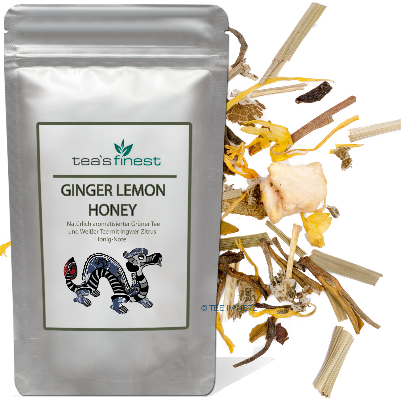 Natürlich aromatisierter Grüner Tee und Weißer Tee mit Ingwer-Zitrus-Honig