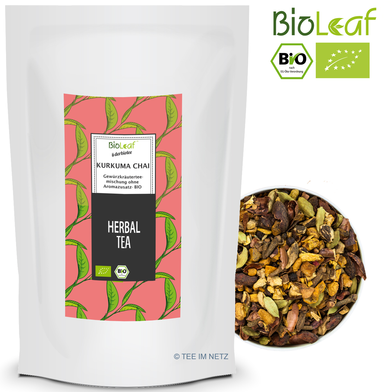 Diese Kräutergewürzteemischung Bio-Kurkuma Chai vereint fein abgestimmte Gewürze zu einer harmonischen, aromatisch-würzigen Teekomposition. Der hohe Anteil an Kurkuma verleiht diesem Gewürztee seine charakteristische goldene Farbe und eine angenehm erdige Würze. Zimt, Fenchel und Apfelstücke sorgen für eine ausgewogene, leicht süßliche Note, während Kakaoschalen und ausgewählte Kräuter dem Tee eine sanfte Tiefe geben.