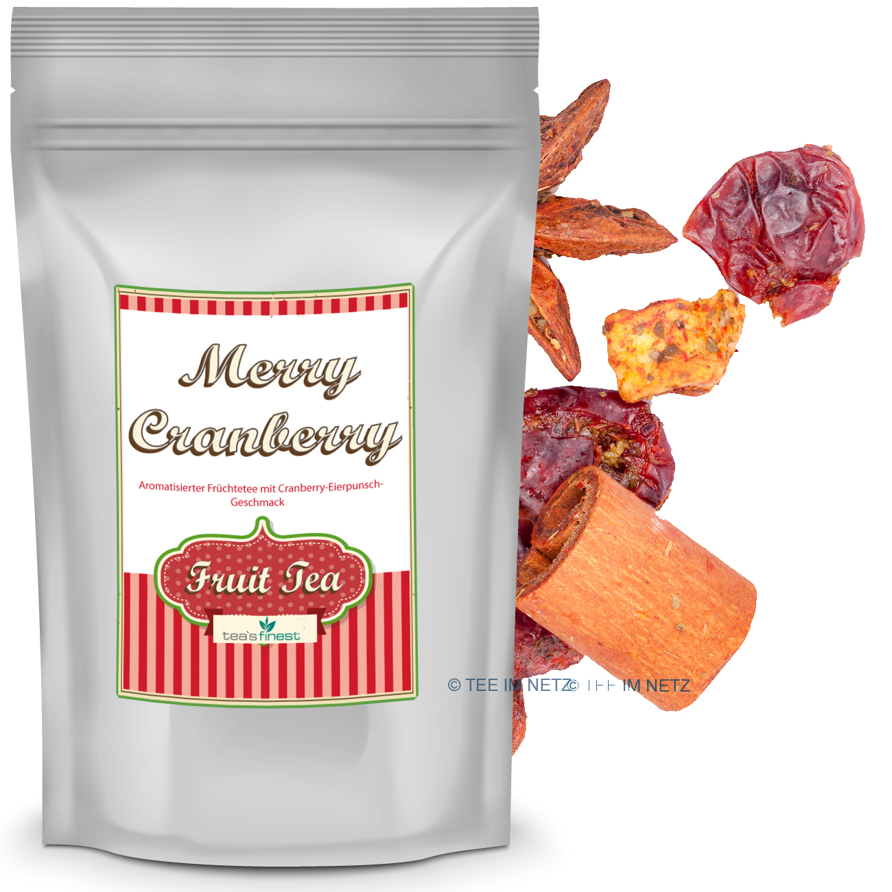 Säurearmer, aromatisierter Früchtetee mit Cranberry-Eierpunsch-Note