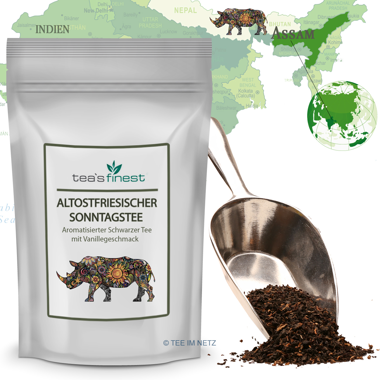 Zubereitung: 1 gestrichenen Teelöffel Tee mit kochendem Wasser übergießen und ca. 3-4 Minuten ziehen lassen.