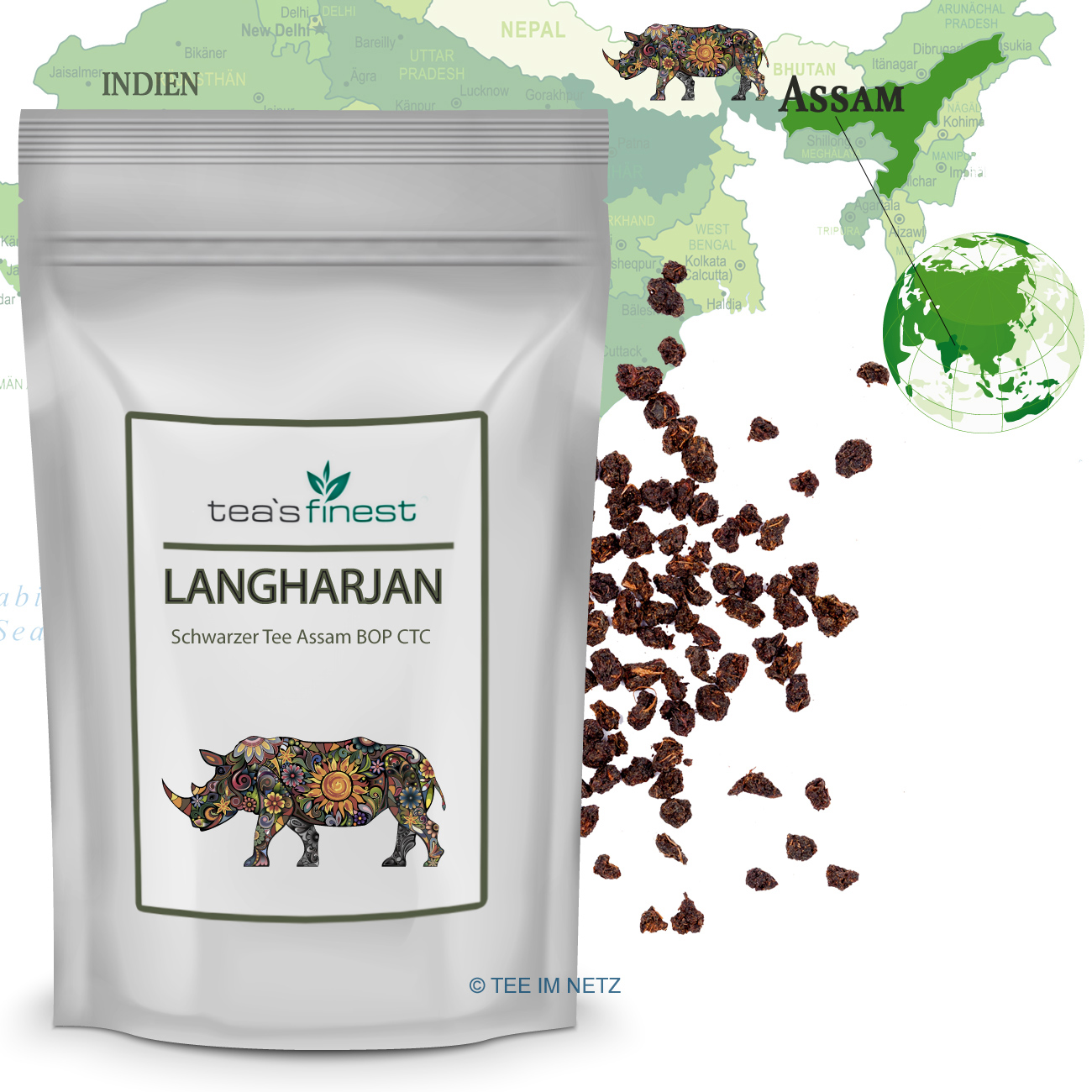 Ein sehr kräftiger Assam Broken-Tee, mit dem typischen kugeligen Broken-Blattgrad. Diese Tees werden in England bevorzugt und schmecken sehr gut mit einem Schuß Milch und Kandiszucker.