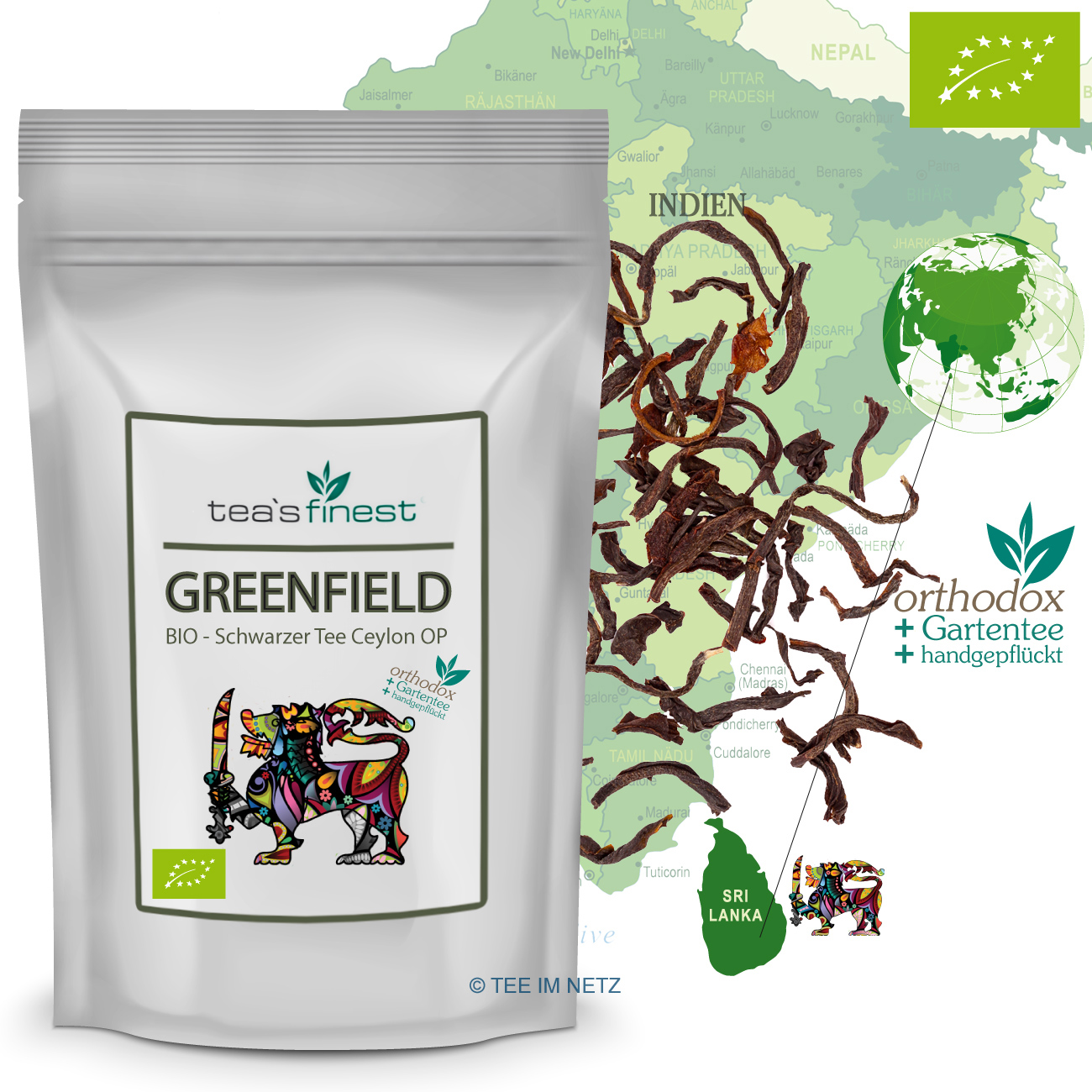 Der Teegarten Greenfield liegt auf einer Höhe von 1500-2000 m im Haputale-Distrikt. Dieser Ceylon zeichnet sich durch seinen fein-herben Geschmack und seine typisch kupferfarbene Tasse aus. Ein sehr gut verarbeiteter Tee in Bio-Spitzenqualität.