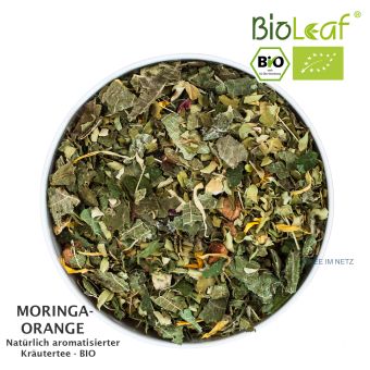 Ein fruchtiger Bio-Kräutertee, der die feinen Blätter des Moringa-Baums mit erlesenen Zutaten und spritzigem Orangenaroma vereint. Natürlich in zertifizierter Bio-Qualität.